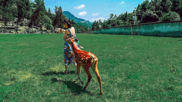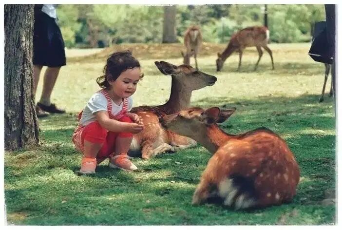 因为生活中能和梅花鹿零距离亲密接触的机会可不多,