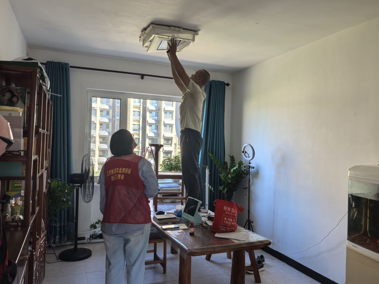 协调后,社区工作并未停止。工作人员联系物业维修师傅,当天下午上门查看损坏电器和灯具,记录型号。因物业维修费用需审批,期间居民多次催促,工作人员全程关注并督促进度。